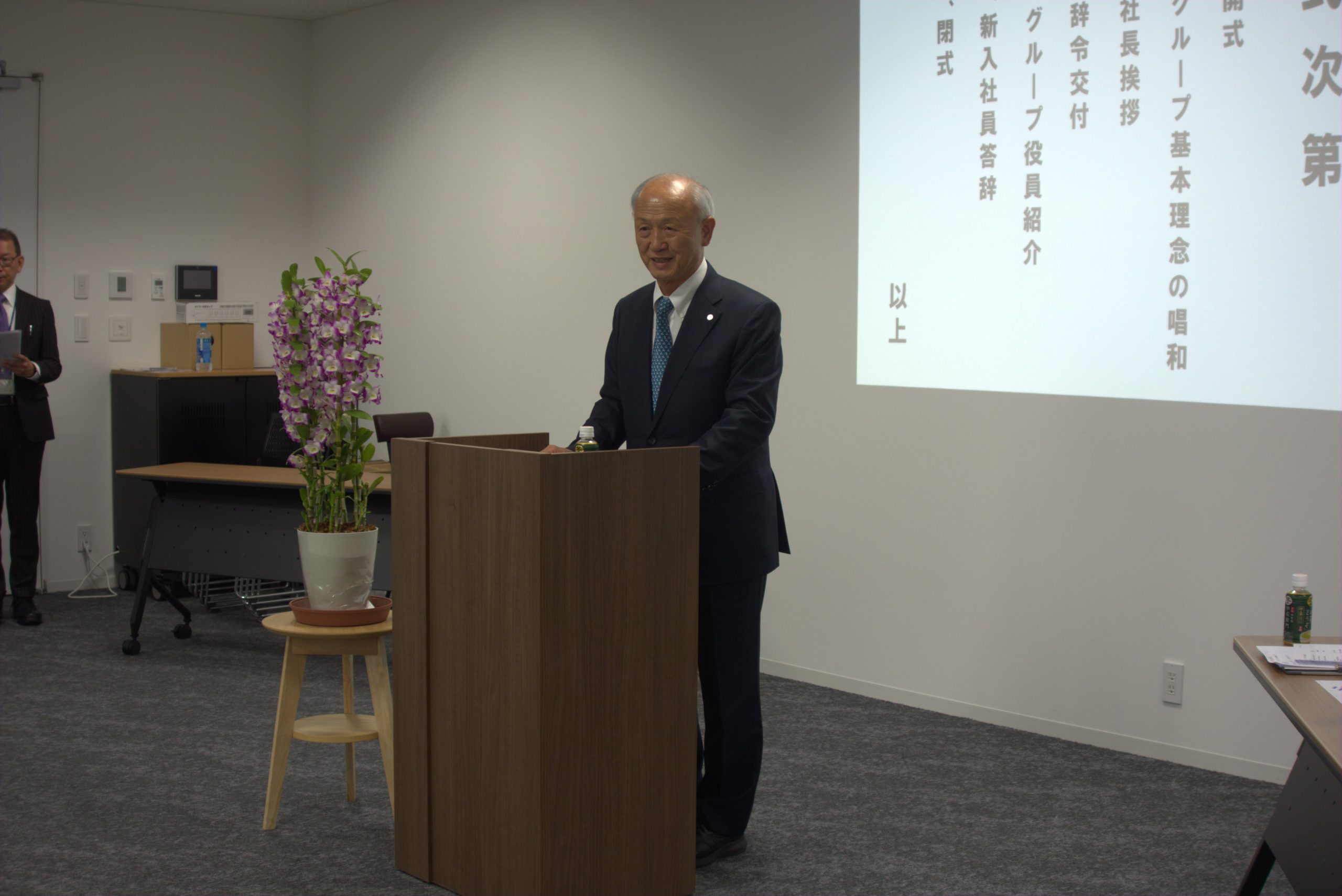 式典では、代表取締役の町田をはじめ、各役員より温かな、かつ期待を込めた激励の言葉が贈られました。